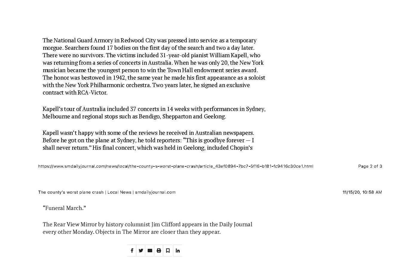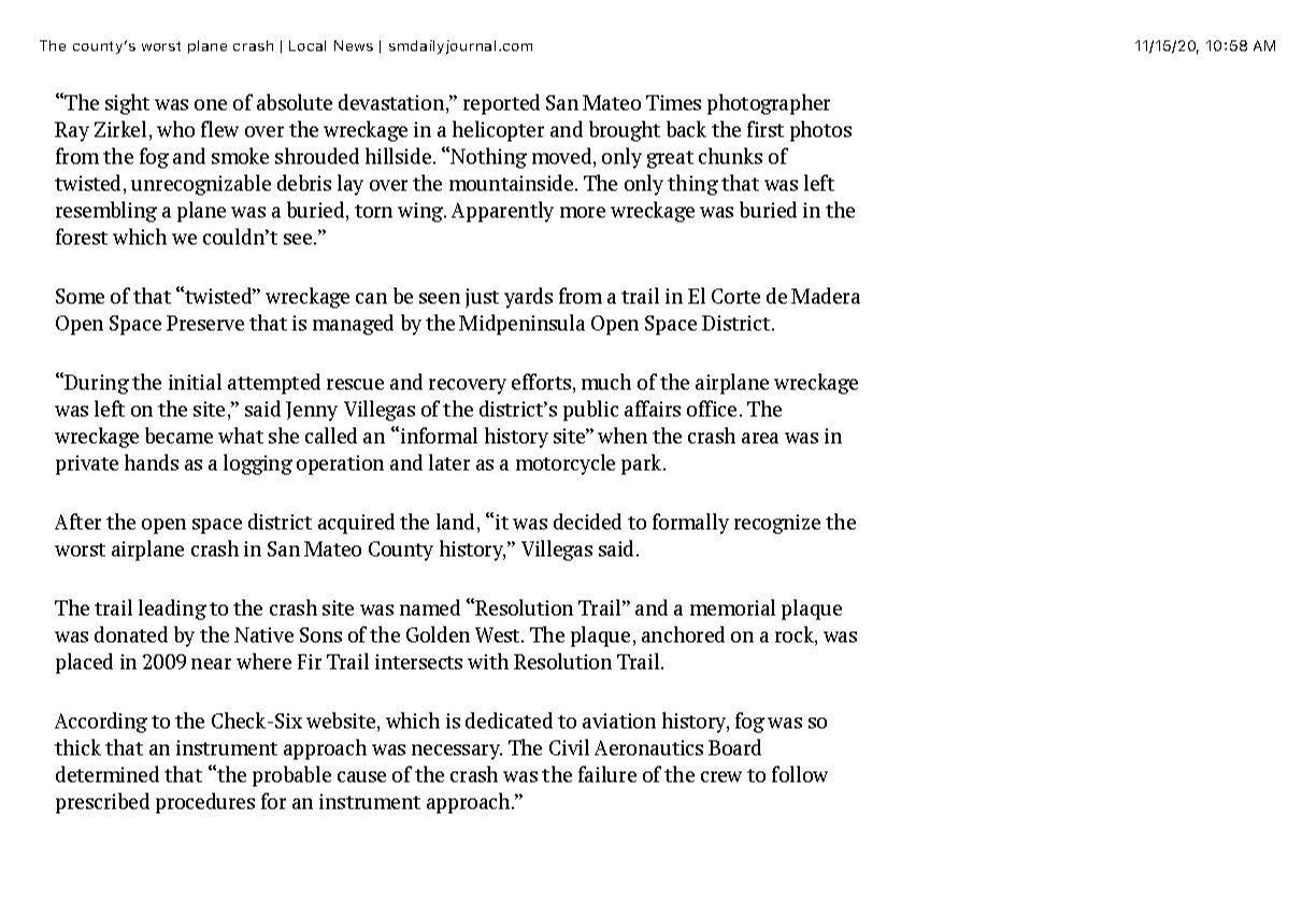 From the Daily Journal archives ~ The county’s worst plane crash ~ By Jim Clifford ~ Feb 13, 2017